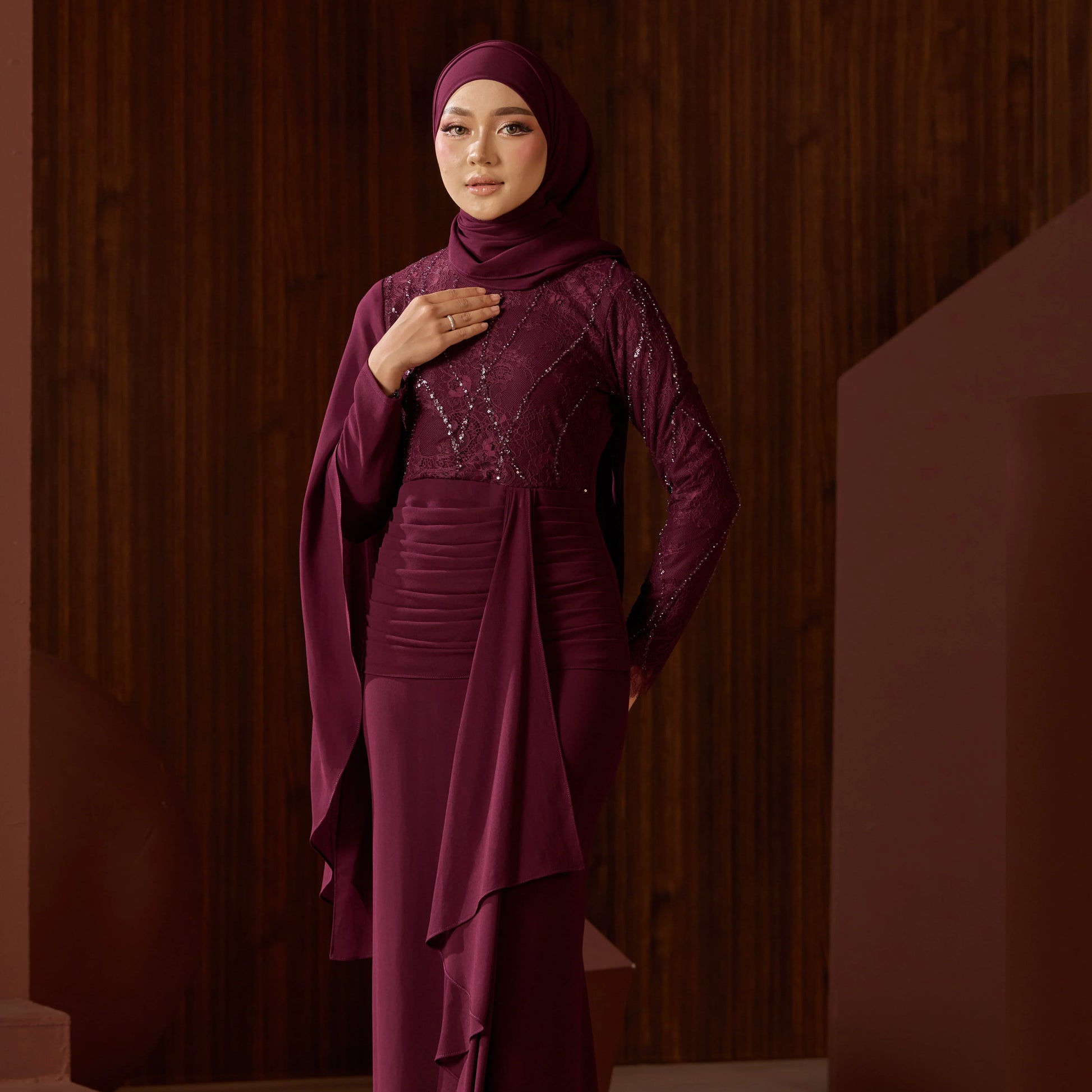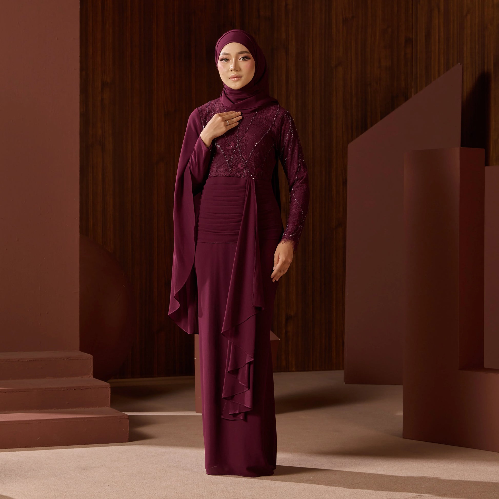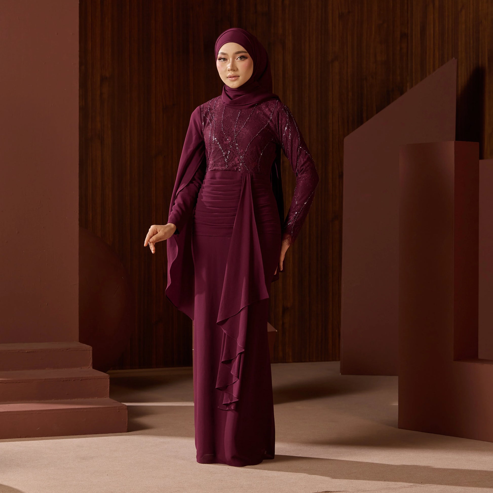 - Long sleeves with chiffon